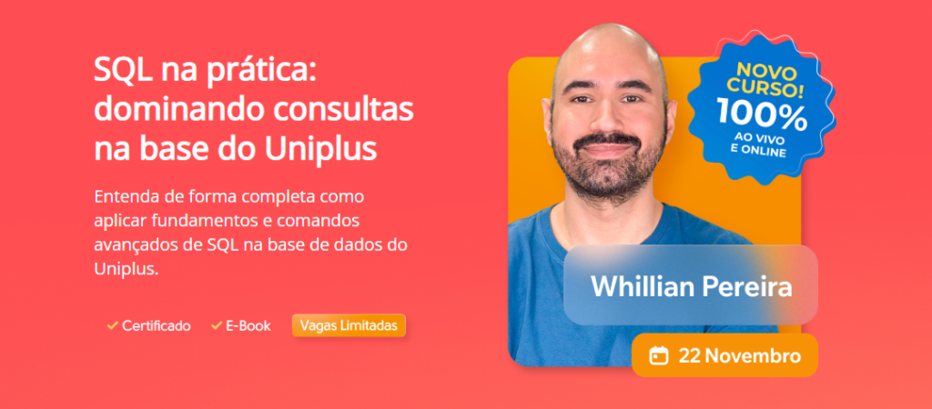 Entenda de forma completa como aplicar fundamentos e comandos avançados de SQL na base de dados do Uniplus. Conteúdo fundamental para ações de manutenção no banco de dados, montagem de relatórios personalizados, dashboards e aplicações de BI.